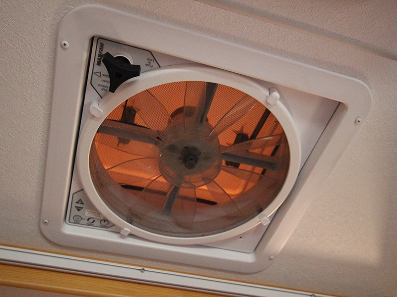 天井にある換気扇です。 給気と排気ができます。 夏場など熱気を排出することができます。